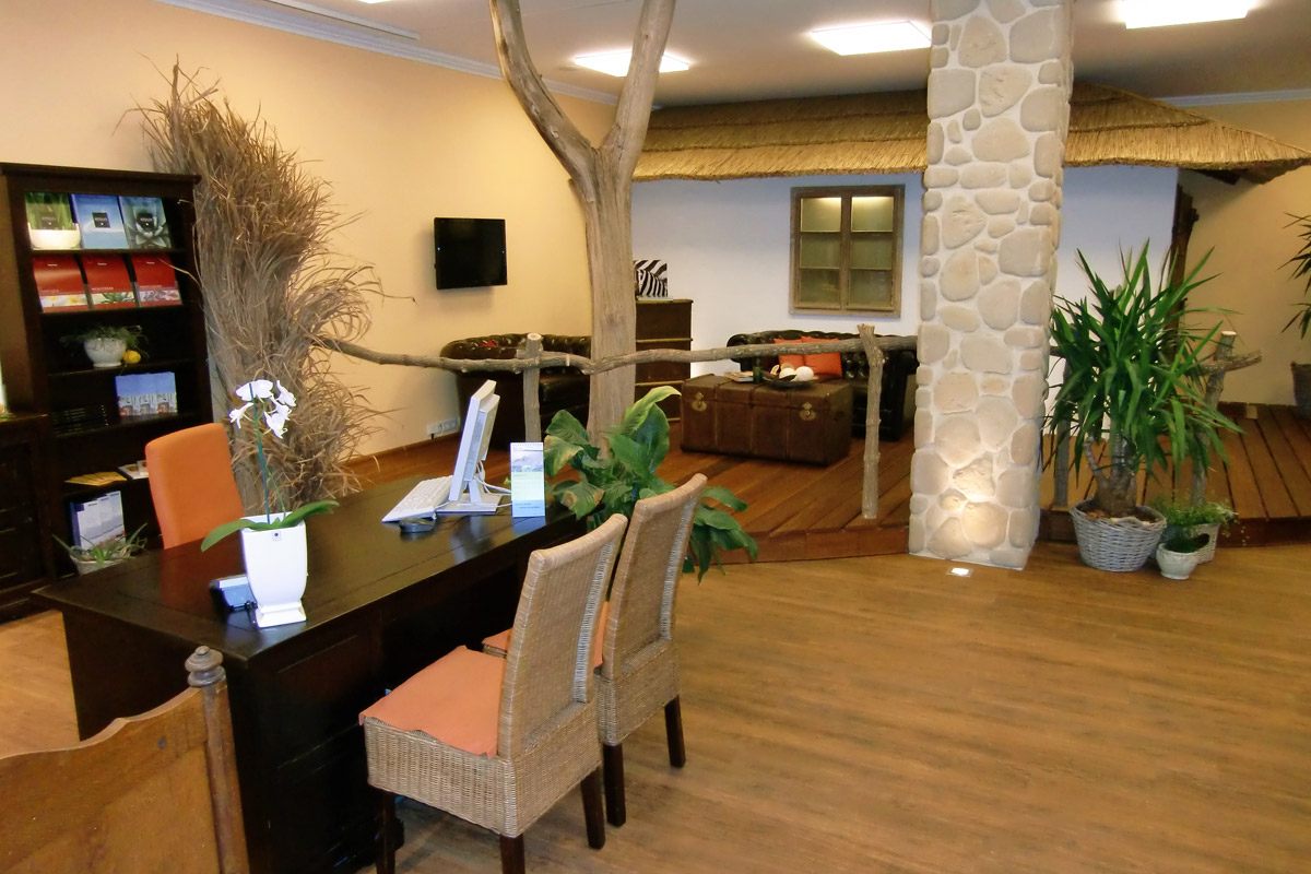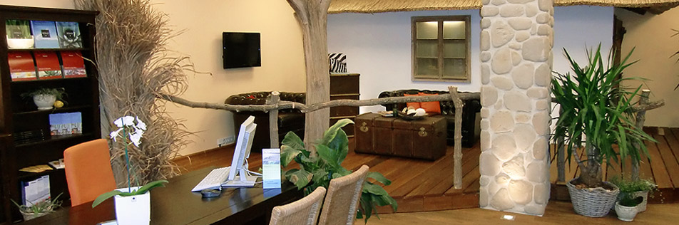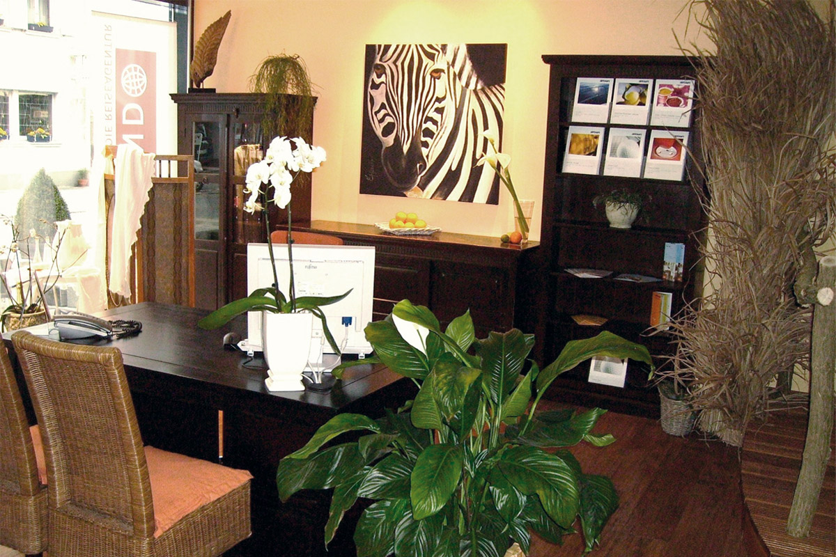 Schon der Besuch unseres Reisebüros ist ein Erlebnis. Wir haben uns für eine besondere Art der Einrichtung entschieden. Der erste Blick in die hellen, großen Räume ist sehr beeindruckend. Leise Hintergrundmusik, geschmackvolles, südländisches Ambiente,  hier und da einige afrikanische Dekorationen, mediterrane Impressionen auf Leinwand sowie Möbel im Kolonialstil.